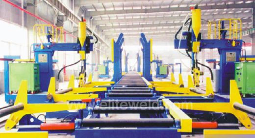 Elite can design and dustomize various type of special H-Beam build up line according to the technological requirement and different process capacity given by the customer,including light duty type and heavy duty. Economical and practical light duty H-Beam build up line is be formed the multi-head strip(or cnc strip)cutting machine,H-Beam assembling machine,H-Beam welding machine,H-Beam straightening machine,H-Beam shot blasting machine. Automatic mode heavy duty H-Beam build up line is widely used in various metal structure enterprises domestically,the main features are automatic production flow of assembling,overturning,welding,workpiece converying and straightening are realized,smooth in technology,high in efficiency. |